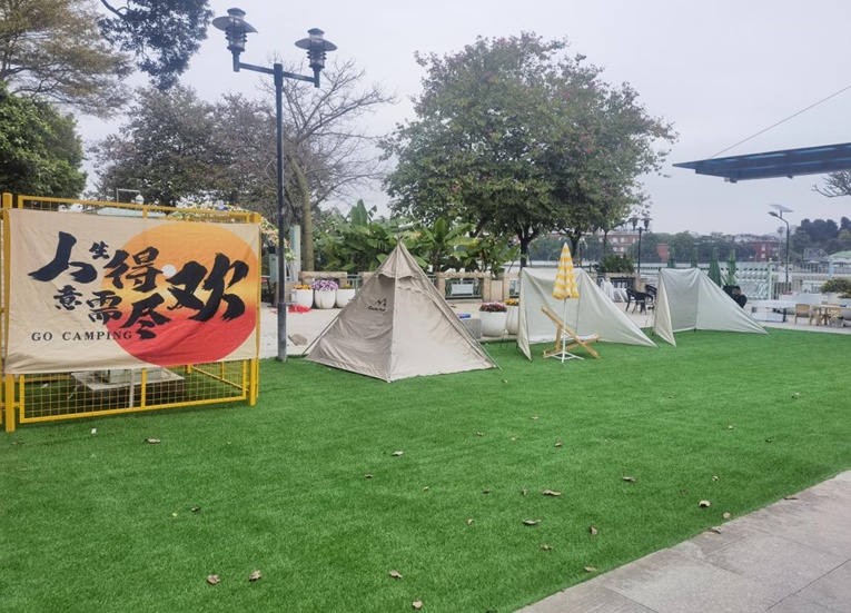 乐园还设有各种类型的帐篷和天幕。绿色的大地、蔚蓝的天空以及特色的帐篷,让人充分享受到户外活动的自由和放松。