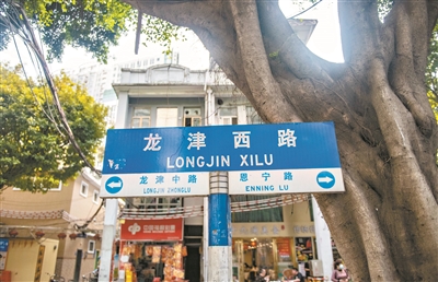 龙津路长约2.3公里,南接恩宁路,北邻陈家祠,东通康王路,西邻荔湾湖,于1930年扩建成道路,分为西、中、东三段路。要问龙津路的“龙”是个什么“龙”?有个流传最广的传说:相传,明朝时期,一位英国商人来到广州,闲游五仙观时,见到一条老葛藤能吊起千斤大钟,很是神奇,于是他游说一番“骗”来葛藤,回到居所后用水清洗葛藤时,却不想葛藤遇水竟“幻化”成“龙”,一飞冲天,不见踪影,在今天龙津路的位置留下一滴涎沫,即“口水”,从此人们便以“龙津”二字称呼这条路。