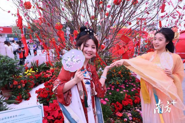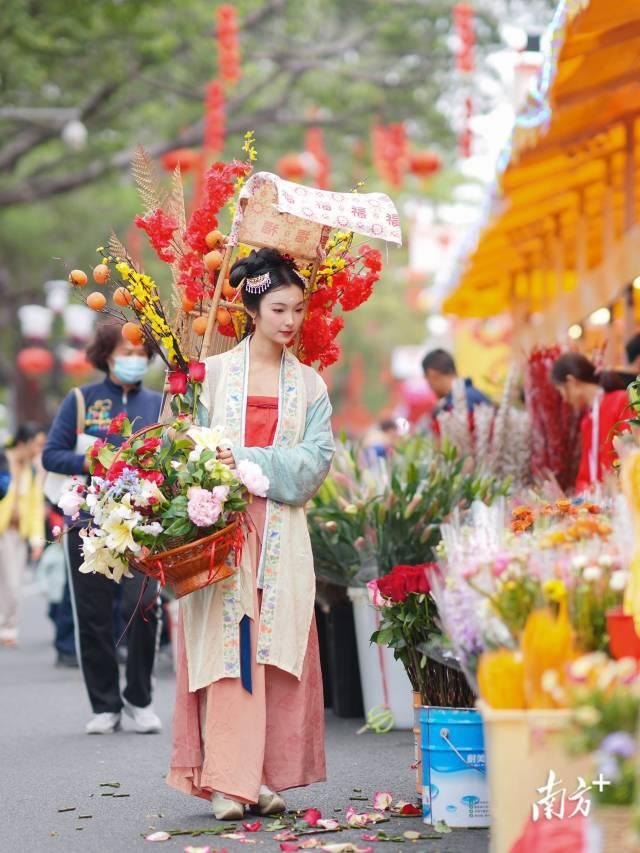 2月6日,广州海珠花市,行走在鲜花之间的“花仙子”,成为2024海珠滨江花市一道亮丽风景线。