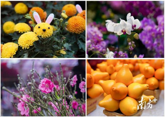 在广州各花市,万寿菊、兰花、桃花、五代同堂(乳茄)等年花很受市民青睐。
