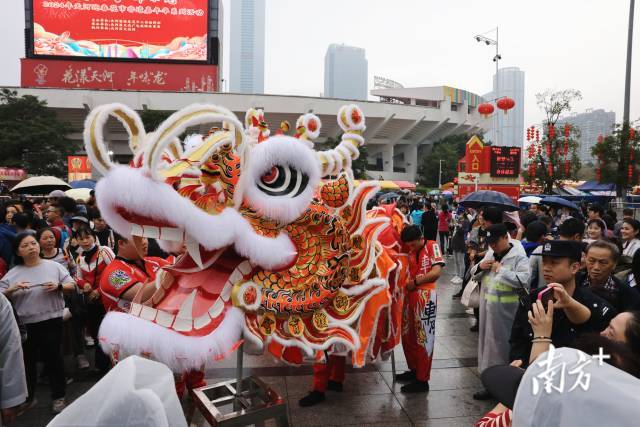 2月4日,天河花市开锣,当天下午,在体育中心南广场精彩的舞狮表演,吸引了众多市民游客。