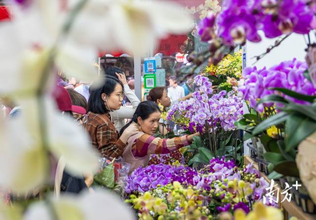 临近春节,广州岭南花卉市场迎来旺季,众多市民前来选购年花。