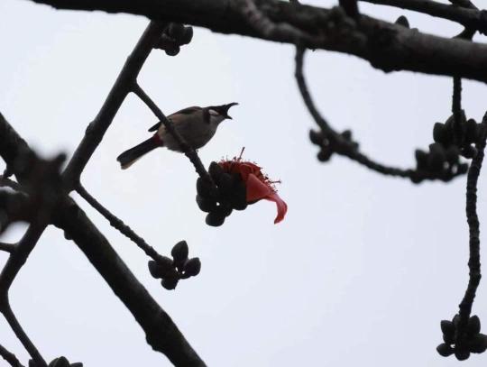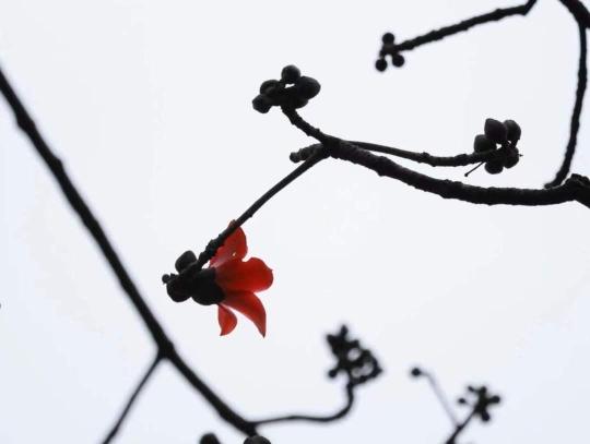 守望多天的木棉树,在龙年到来之际,绽放出海珠广场的第一朵英雄花。