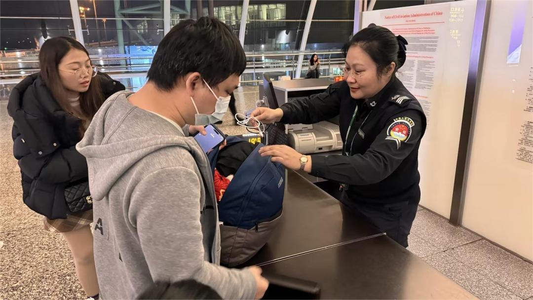 春运前夕,刚刚完成婚礼的包文婧与何子豪,便转身投入到春运保障工作的第一线。作为民航安检员的他们,每天主要负责出行旅客的证件、人身及随身行李的安全检查工作。将风险抵御在航线之外,确保每一架航班的平安起落,是他们恪守的职责与使命。