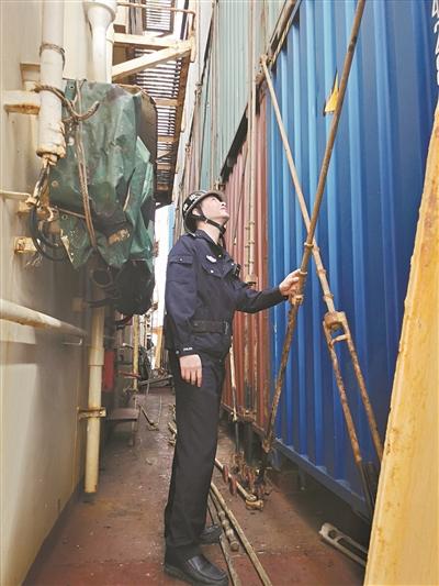 在开始船体检查的体力活之前,他先做人证对照,船员集合完毕后,对照证件分解着比对一张张陌生的面孔;登轮情况,要细细地问;闷热的机舱要戴上耳塞;集装箱的缝隙里更要仔细检查;弯下腰,可能会发现不一样的痕迹……