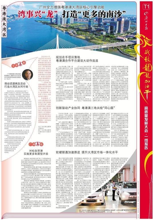 机遇面前,广州作为粤港澳大湾区核心引擎,始终胸怀“国之大者”,肩负起新的使命,做强南沙这一关键引擎,激荡大湾区建设的澎湃动力,全力增强大湾区区域发展核心引擎功能,携手港澳和湾区其他城市,共建国际一流湾区和世界级城市群。