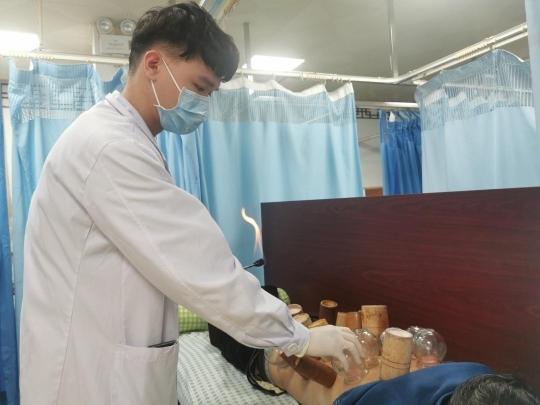 中医科护士谢加丽从事护理工作已经18年,刮痧手法了得,附近的街坊都知道她。开工第一天,街坊都排着队来接受刮痧。只见在治疗床上,陈女士正在按谢加丽的要求闭目平躺。谢加丽则手握着刮痧板,帮陈女士在头部、面部、颈部等位置进行刮痧。