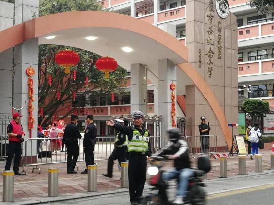 当天早上6时许,上学路上便出现了广州交警的身影。学校门前车水马龙,民警有序指挥过往车辆及行人,保障师生安全返校和车辆有序通行。开学首日,广州交警在学校出入口等重点路段设置92个“护学岗”,联合教育部门在全市130余个学校开展“警家校”护安护畅行动,保障返校师生出行安全。