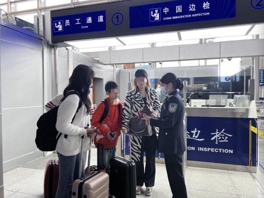 当日上午,在验放南沙至香港中港城出境航班时,民警发现一位母亲与其三位外籍子女因出现手续不符问题正在焦虑发愁。经了解,得知她们可能因此耽误出境航班无法在佳节回家团聚后,南沙边检站执勤四队迅速行动,一方面做好旅客情绪安抚,另一方面积极与有关部门沟通协调,高效按程序处理,保障旅客顺利出境。在完成相关手续后,旅客激动不已,盛赞南粤国门的浓浓暖意,感谢移民管理警察人性化执法做法。