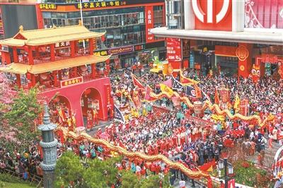 开幕式后,在北京路步行街至西湖路沿线,十二支巡游队伍带来南越雄风、非遗华彩、金甲侠光、广府婚俗等特色展示,传递浓浓的广府年味。吸引了超过3万名市民游客现场观看。