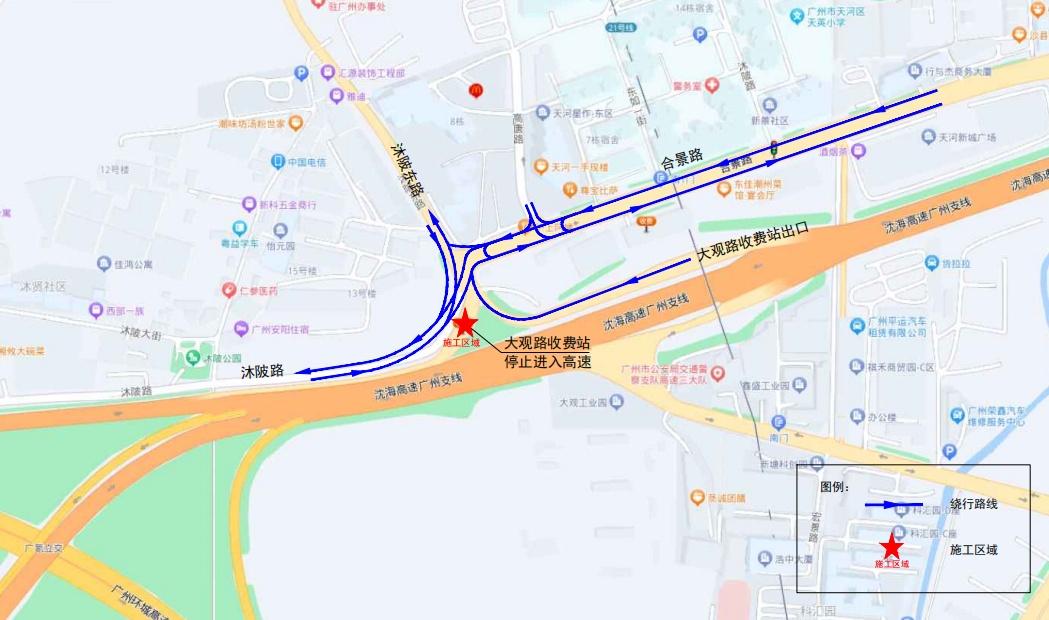 封闭位置:天河区合景路沐陂东路交叉口南侧广深高速合景路口(大观路北收费站)入口收费站