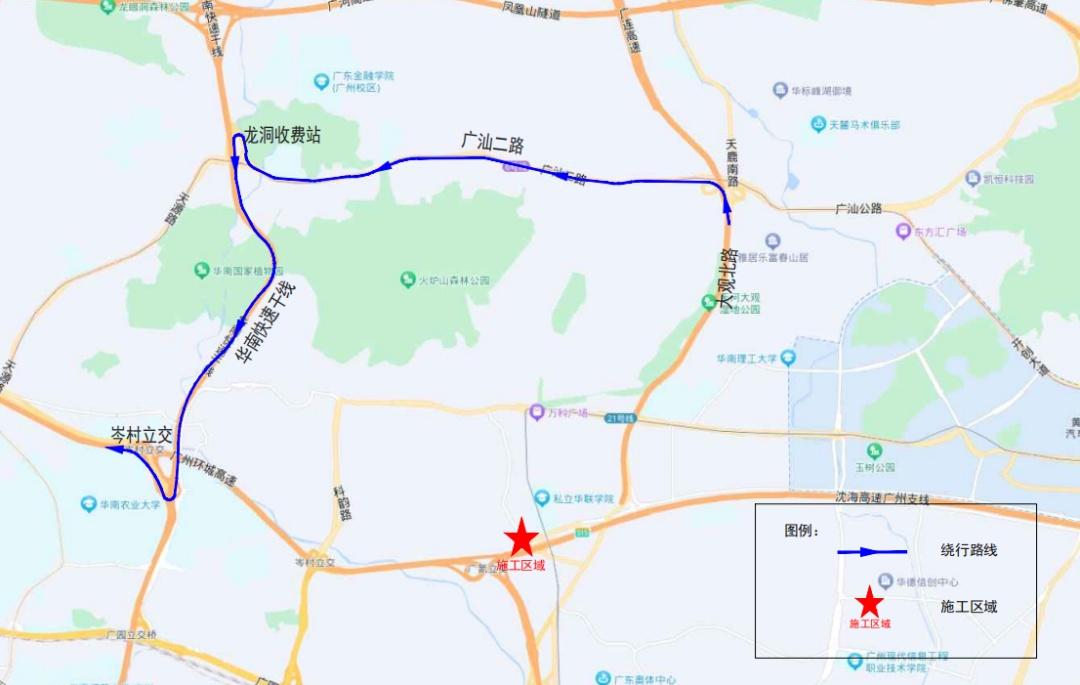 大型车辆绕行方案2:可通过广汕公路—华南快速路龙洞收费站绕行。