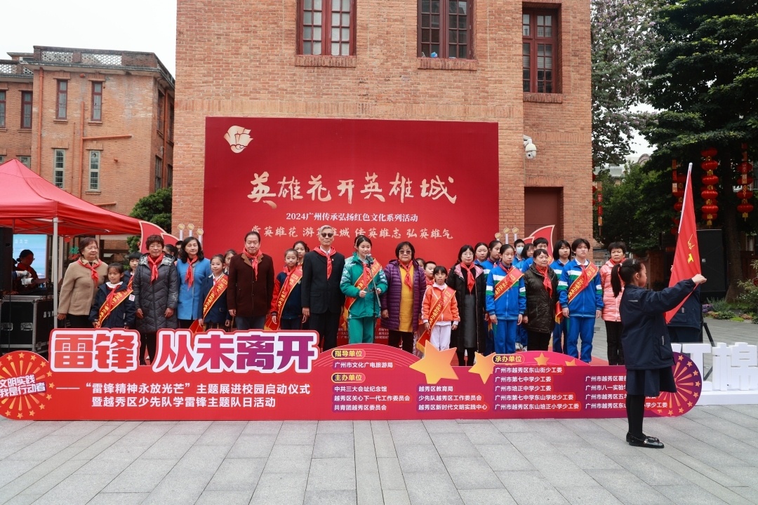 阳春三月花开艳,雷锋精神谱新篇!为大力弘扬雷锋精神,厚植青少年爱党爱国爱社会主义情感,3月2日下午,“雷锋从未离开——‘雷锋精神永放光芒’主题展进校园启动仪式暨越秀区少先队学雷锋主题队日活动”在越秀区中共三大会址纪念馆广场搭建的“红棉舞台”上举行。