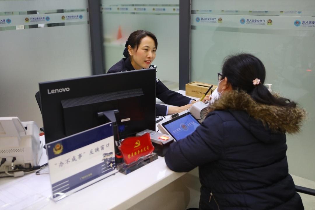 今年春节前夕,广州公安出入境办证窗口迎来了办证的“大客流”。在位于人民北路的广州市公安局政务服务综合大厅人工服务区里,一眼望去几乎全是带着孩子前来办理出入境证件的家长。而在智慧办证区里,也有不少家长带着孩子在智能设备前办理签注。出入境管理支队二大队实时关注预约量,根据运行情况和实际需求,适时参照暑假办证高峰实行“6+”优化措施,为市民提供高效、优质服务。