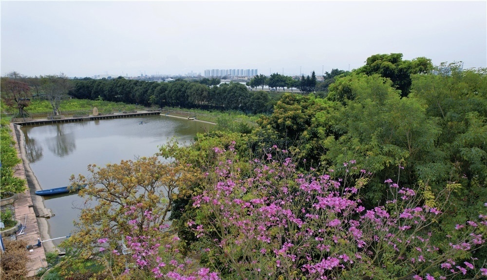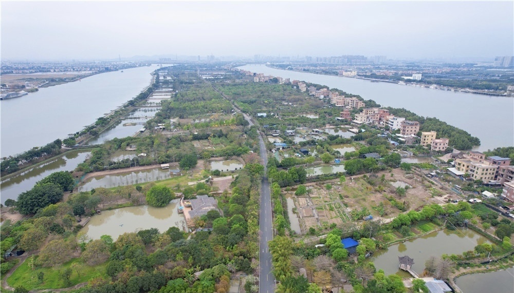 位于广州市番禺区石碁镇的大刀沙是由市桥水道、沙湾水道和大九律水道这三条水道环绕而成的冲击沙洲岛。这里生态葱茏,风光旖旎、景色宜人,素有“十里长廊 生态绿洲”的美誉。