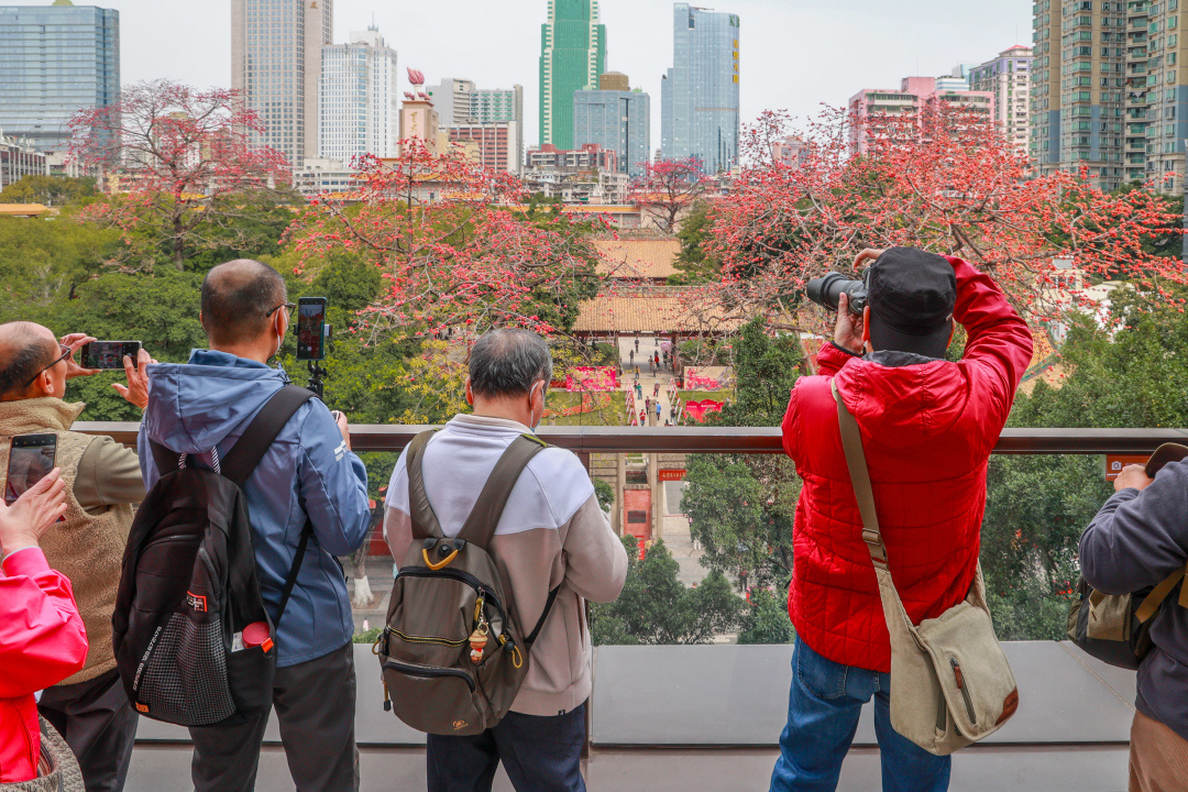 木棉花是广州的市花,被誉为“英雄花”。时值三月,正是英雄花开好时节。农讲所是“英雄花开英雄城”2024广州传承弘扬红色文化系列活动中8个“红棉之旅”最佳体验观赏点之一,农讲所辖内还有2棵树龄超过百年的红棉树。有着朱漆红墙,琉璃黄瓦的农讲所,与怒放的木红棉交相辉映,融成一幅古朴端庄的画卷。