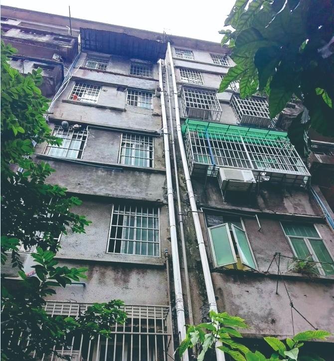 无物业管理的老旧小区,公共设施出了问题谁来管?海珠区工业大道中282号至290号大院是典型的老旧小区。小区外墙排水管年久老化,管壁严重锈蚀穿孔,污水从天而降,严重影响居民的生活。