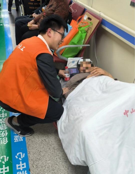 到达医院后工作人员分工合作,有的帮忙办理就医手续,有的陪同林伯进行各项身体检查。在排队候诊期间,林伯对医院仍有抗拒情绪,但在社工的守护与贴心服务下,林伯逐渐放下抗拒。经医生诊断,林伯确诊为股骨骨折,需住院手术治疗,但医院床位紧张。随后经过现场工作人员的协调争取,医院为林伯办理了加急床位。在一切安排妥当后,已经将近深夜12点,社工耐心安抚林伯叔安心在医院入住。“真是太感谢你们了,幸亏有你们,要不然我都不知道会发生什么事情呢?”林伯说。