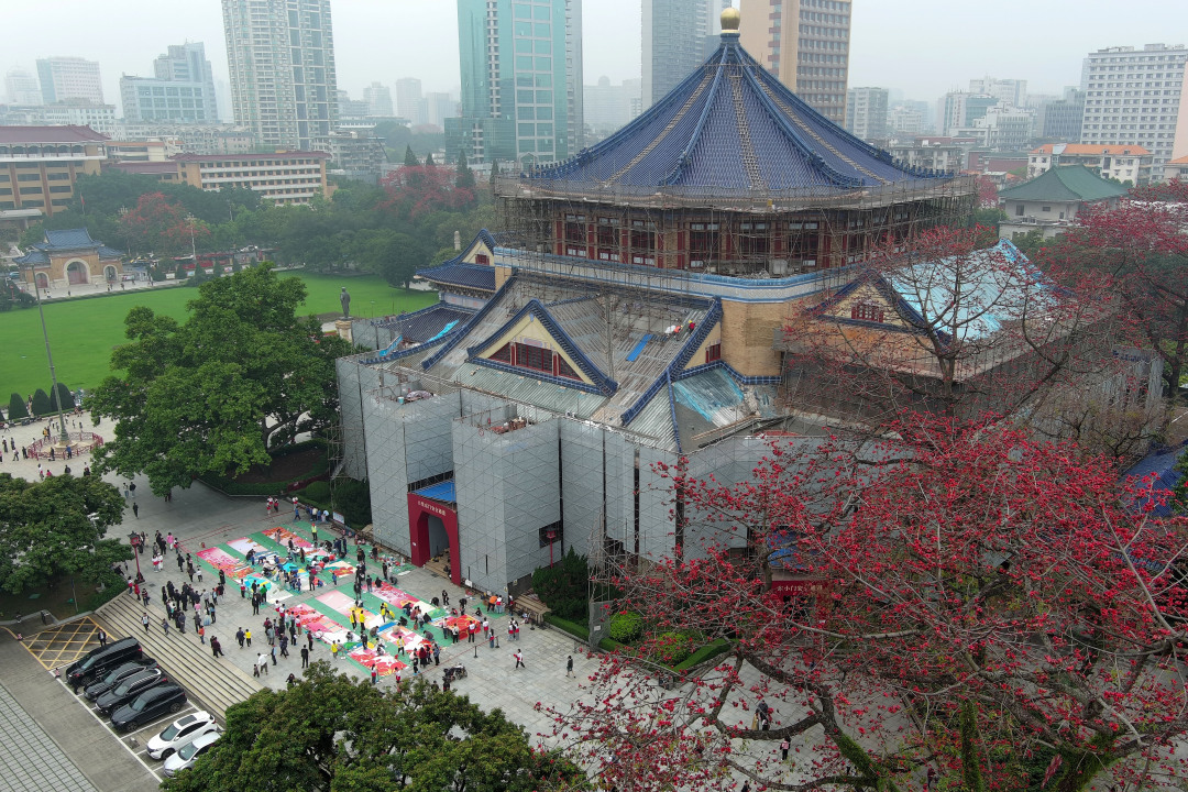 3月16日,广州市中山纪念堂园区内,木棉文化节近10场活动正如火如荼地进行。市民游客们穿梭在中山纪念堂的红棉花海之中,感受这座古老建筑与自然生态的完美融合。一系列丰富多彩的活动轮番上演,包括同绘红棉长卷、古木棉道赛诗会、红棉舞台展演及红棉研学活动等,市民游客在享受红棉盛宴的同时,沉浸式感受着广州的红色文化。