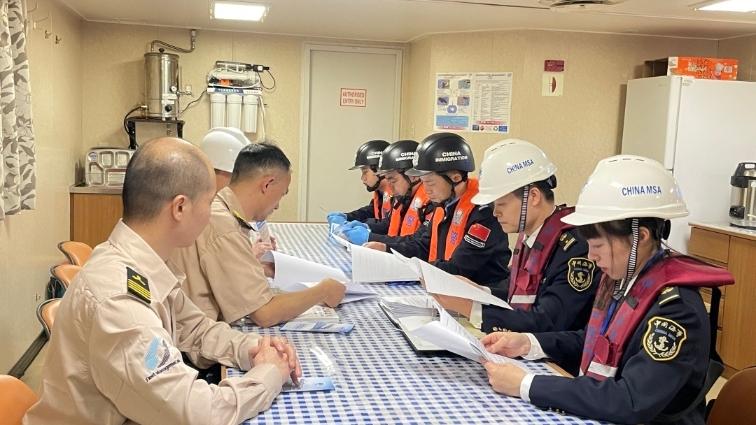 登临检查过程中,联合登临组对船舶AIS系统、船舶舱室等情况进行了深入细致的检查,并向船方宣讲当前口岸形势、普及出入境政策,督促船方提高警惕、遵纪守法,加强自身监管,从源头堵住安全漏洞。
