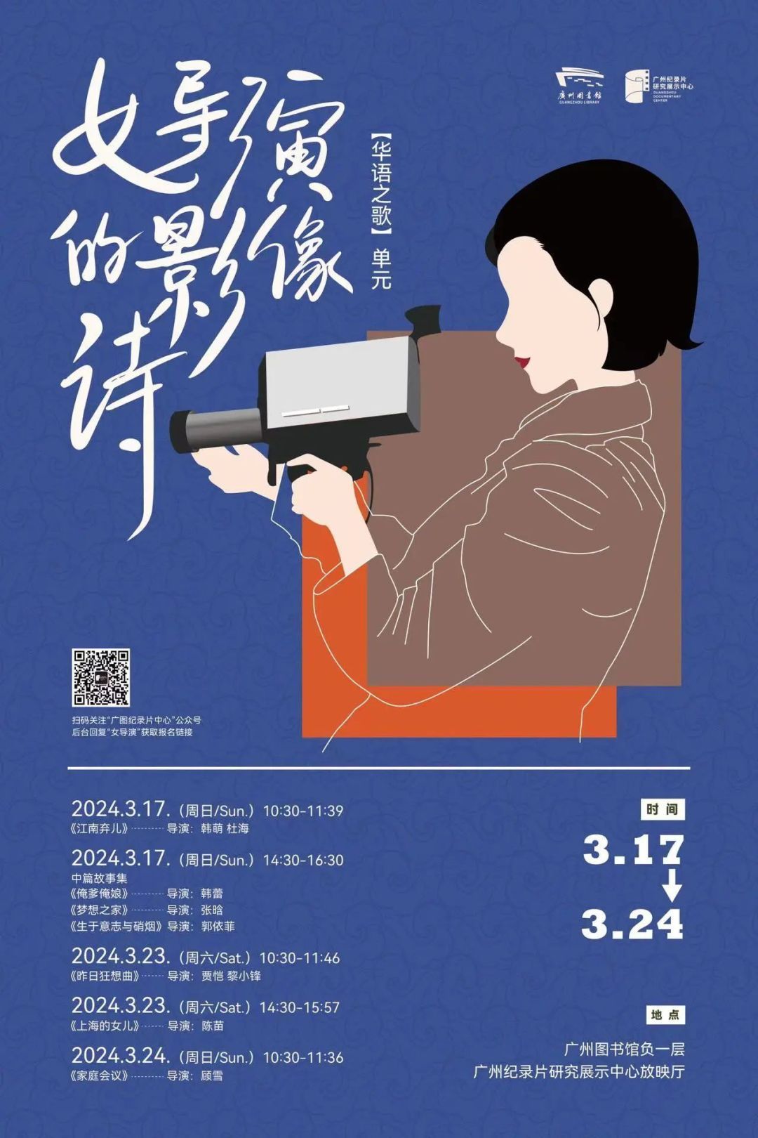 3月17日至24日,广州图书馆“女导演的影像诗”系列活动推出第二单元【华语之歌】,展映七部由华人女导演执导的纪录片作品,其中五部作品为女性导演独立执导。