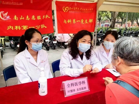 精彩的健康科普活动后,还有义诊活动,广州医科大学附属第一医院“南山名医团”在现场解答街坊的健康问题,以及进行血管等免费筛查项目。