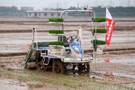 在市农科院科研基地东涌基地的稻田内,无人驾驶智能车在田间插秧,不一会儿,一排排绿色的水稻苗整齐地种植在泥土里;在花都区2024年春耕生产现场会上,秧盘育秧播种机、轮式耕整机、乘坐式高速插秧机、智能插秧机、农用无人飞机等一批新型机具轮番上阵,让农民“零”距离感受新质生产力的澎湃动能……各种现代农机装备开进田间地头主战场,成为提升春耕生产效率重要引擎。