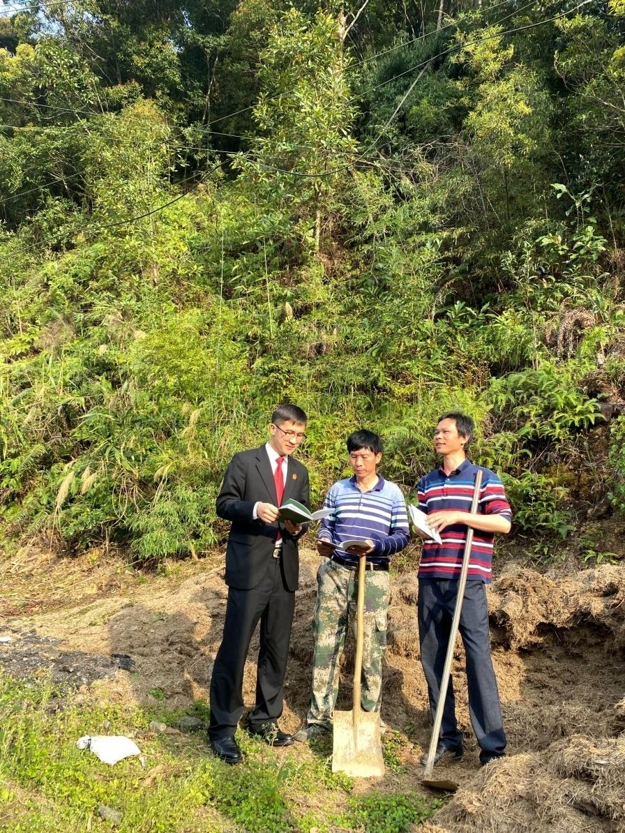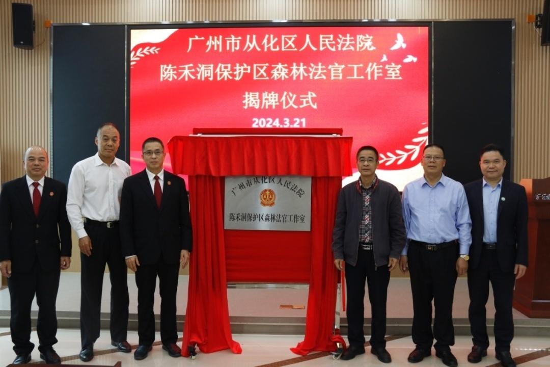 阳春三月,草长莺飞。在这生机盎然的时节,广州市从化区人民法院“森林法官”在陈禾洞省级自然保护区内的小杉村忙碌着,他们向来往的村民讲解森林防火知识,派发环境保护普法宣传册,邀请村民们一同参与到森林生态环境保护的普法之旅……3月21日,广州市首批“森林法官”工作室在广州市从化区挂牌成立,由广州市从化区人民法院分别驻点广东从化陈禾洞省级自然保护区、流溪河林场、大岭山林场,设立“森林法官”工作室,为建设绿美从化贡献法院力量。广州市中级人民法院环境资源庭庭长、市人大代表、从化区人民法院院长、从化区林业和园林局局长、从化区良口镇人大主席、从化区吕田镇人大主席、陈禾洞省级自然保护区负责人、流溪河林场、大岭山林场书记等参加了揭牌、授牌仪式。