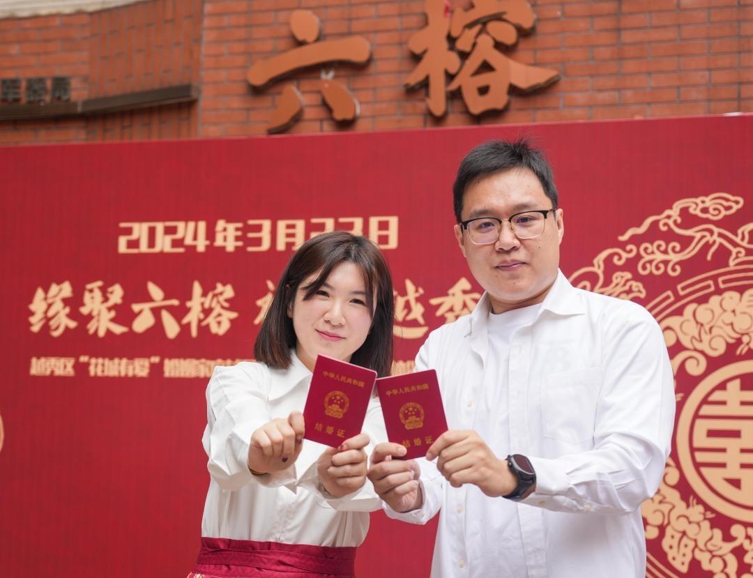 自2021年以来,广州始终立足特色优势,持续推进婚俗改革,越秀区积极响应并打造“花城有囍”婚姻登记颁证和“花城有爱”婚姻家庭辅导服务品牌,倡导小型婚礼、大美婚俗,进一步加强新人们对优秀传统中华文化的认同感,提高婚姻家庭服务质量,倡导文明健康婚俗新风。