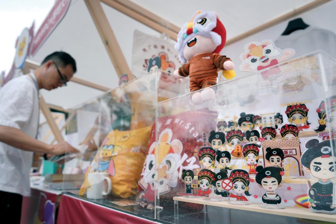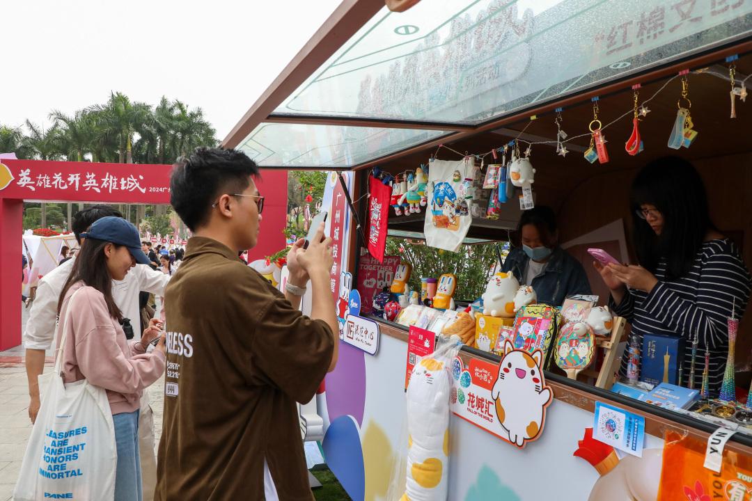 文创要“接地气”才能“有朝气”。在红棉礼赞区旁,三台文创售卖车展示多款颇具本土气息的文化产品。