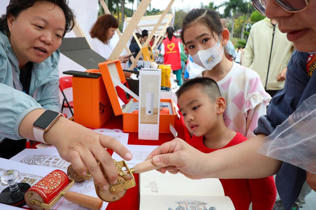 展区现场还设置了文物墨拓拼接体验、传统面塑木工工艺体验、叠色章等打卡集章等多样互动活动。