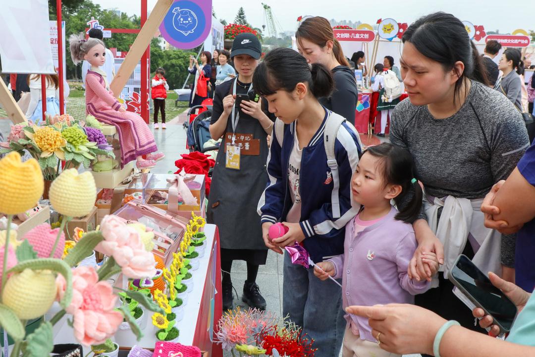 以广州地标建筑为核心的文创颇具纪念意义,在活动现场,包括代表花城汇、流花中心等经典地区的吉祥物“花小吉”、潮玩店“兔gether”的系列产品,以及广州塔“小蛮腰”IP和木棉花胸针、醒狮首饰、珐琅摆盘等岭南文化特色产品广受市民游客欢迎。