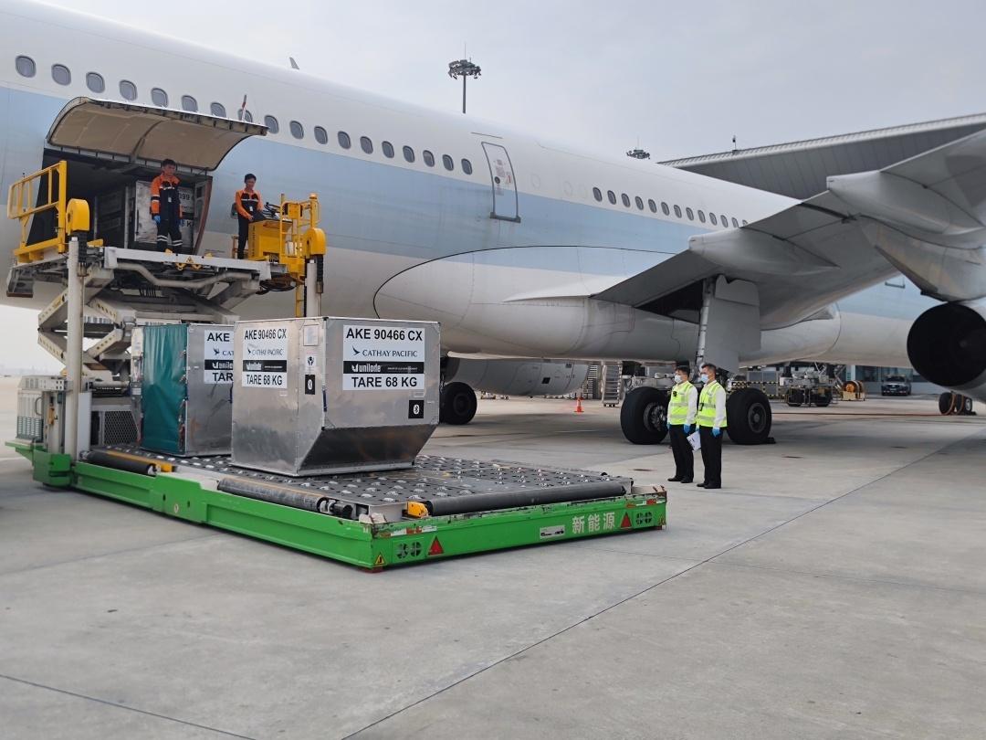 广州海关所属广州白云机场海关关员对进口心脏起搏器等货物进行机边监卸