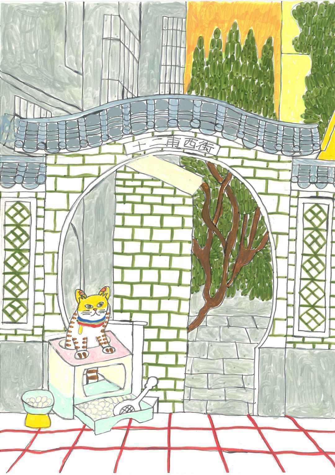 “猫猫也有自己的家了”,广州孤独症青年王夏京画了一只在猫屋上休憩的猫。他家里养了一只名叫Tigar的猫,是他的好朋友,也是他的画中经常出现的主角。
