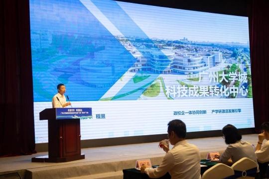 会议上,大学城科技成果转化中心作为科创服务平台代表,介绍了该中心全链条科技服务体系和相关工作成效。