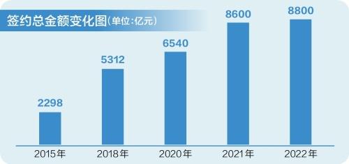 来自花城的十年之约,迎接朋友的诚意与实力,与岁月共长。从广州国际投资年会签约的项目数看:2015年40个、2016年98个、2020年226个、2021年183个、2023年443个——稳步增长的数量,意味着广州朋友圈的持续扩大;从签约总金额看:2015年2298亿元、2018年5312亿元、2020年6540亿元、2021年8600亿元、2022年8800亿元——真金白银的分量,代表着投资者们给广州投下的信任票。