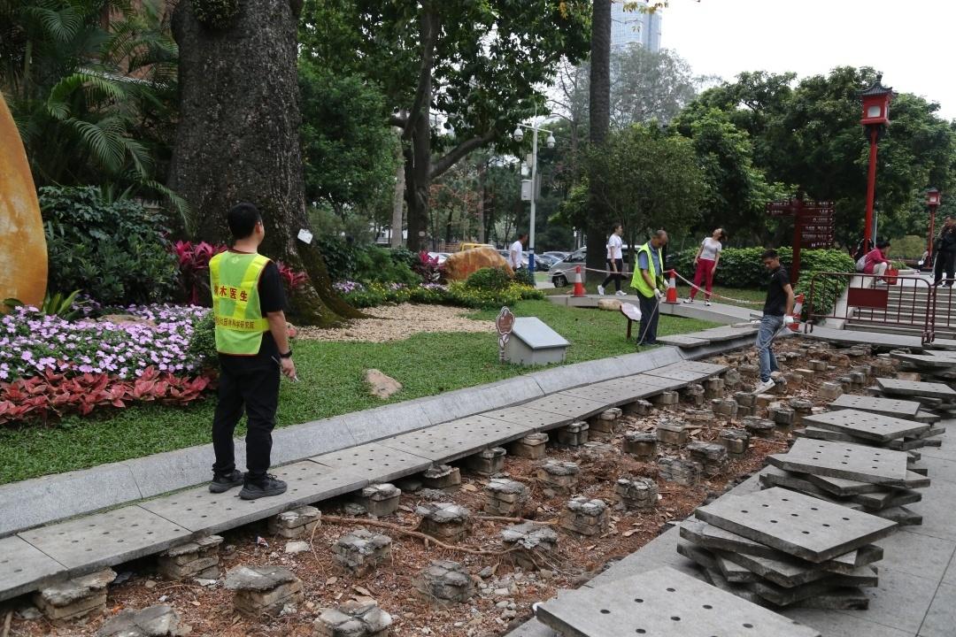 据介绍,“木棉王”栽植于1669年前后。历经350多年的风雨洗礼,火红的木棉每年如约绽放。这株古树的根系也逐渐变得庞大而有力,给周围的地面带来了不小的挑战。2020年,管理中心已将树池西侧硬地改为透气铺装,为“木棉王”的根系提供了良好的生长环境,把原来“挤脚的皮鞋”,换成了“松软透气的洞洞鞋”。充足的养分和舒适的土壤环境,使得“木棉王”根系得到了充分的舒展,不到4年时间,原来的“1.0版洞洞鞋”就被挤变形了。