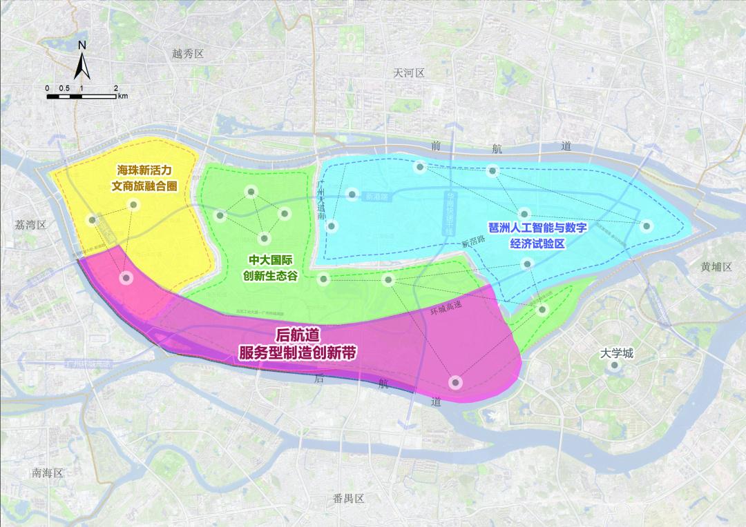 当前,海珠后航道已逐步形成“链主企业+公共平台+中介机构+配套企业+创新人才”集聚共生的湾区级服务型制造创新产业生态。结合都市工业和数字经济“双核驱动”的产业基础,将重点聚焦纺织服装、医药健康、智能终端、精密设备4大柔性微智造产业和绿色智能建筑、智能制造升级服务、工业设计服务、检验检测认证服务、现代化供应链管理、数字化运营管理6类生产性服务业,构建“4+6”服务型制造产业体系。