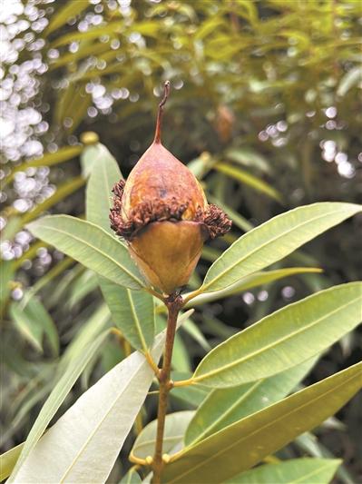 铁力木为藤黄科铁力木属的常绿乔木,树干端直,树冠锥形。单叶对生,新叶嫩红,逐渐变黄绿色,至深绿色。用手摸一摸它的叶子,会感觉到非常硬。铁力木全年基本不落叶,观叶期长,不同季节可以欣赏到不同的美,是优良的行道树和庭园观赏树种。