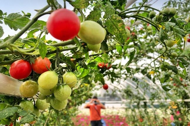 广州南沙明珠现代都市农业实验园,瓜棚上的西红柿大丰收。