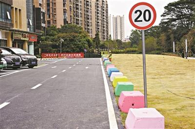 除此之外,“共建路”上的石墩也被打造成了色彩不一的“马卡龙”;人行道也印上了南沙街道LOGO以及“I LOVE 南沙”标语,用缤纷色彩点缀过路居民的出行之旅。