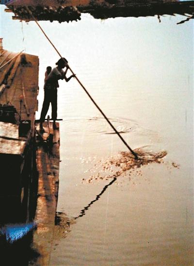 1979年夏,杨对荣与时任白云区文化馆的摄影师冯子祥一起到番禺石楼考察群众文化工作,从市桥乘渡轮,经过七八个小时到达。沿途,他用一台只有标准镜头的海鸥135相机拍下了一组珠江的美景,“你看这个烟囱是岸边的砖瓦厂,一路上有好几个。”