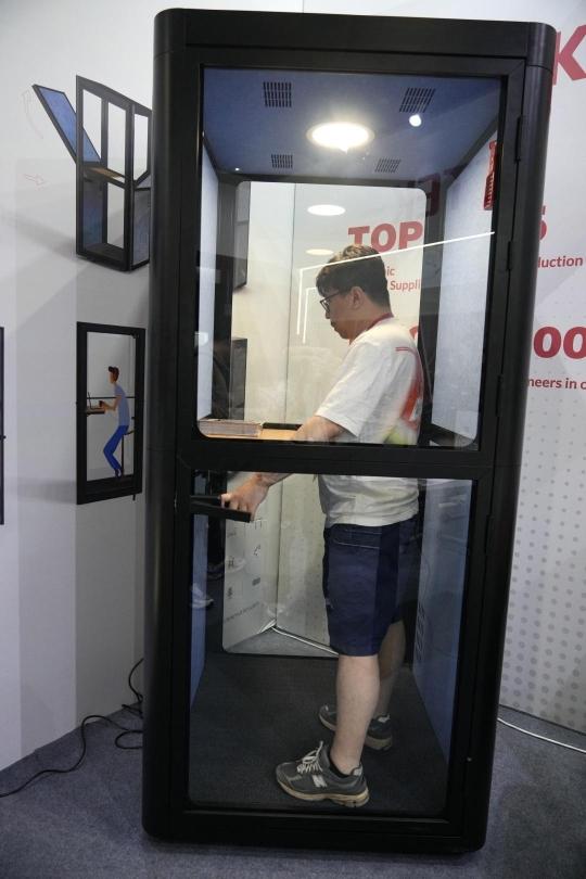 在乐歌人体工学科技股份有限公司,一个黑色“大盒子”虽然放在了展位的角落里,但仍然颇为引人注意。销售人员Arya告诉记者,这“大盒子”其实是一个“静音舱”,可以用在办公室、家庭、公共场所等,方便人们随时找到一个安静空间,“例如在办公室里,如果有一些不太方便在同事面前接听的电话,就可以‘躲’进静音舱里接听;又或者在机场、展会等公众场合,需要一个相对安静的工作间,静音舱也可以帮到你。”据介绍,静音舱可以降低约25分贝的音量。