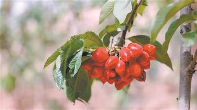 谷雨刚过,疏附县吾库萨克镇现代农业产业园棚一派繁忙的景象。温室大棚中,从山东烟台引进的“布鲁克斯”“俄8”“美早”等大樱桃已进入高产期,一串串个头饱满、色泽红润的大樱桃挂满枝头,吸引不少周边游客前来现场采摘。