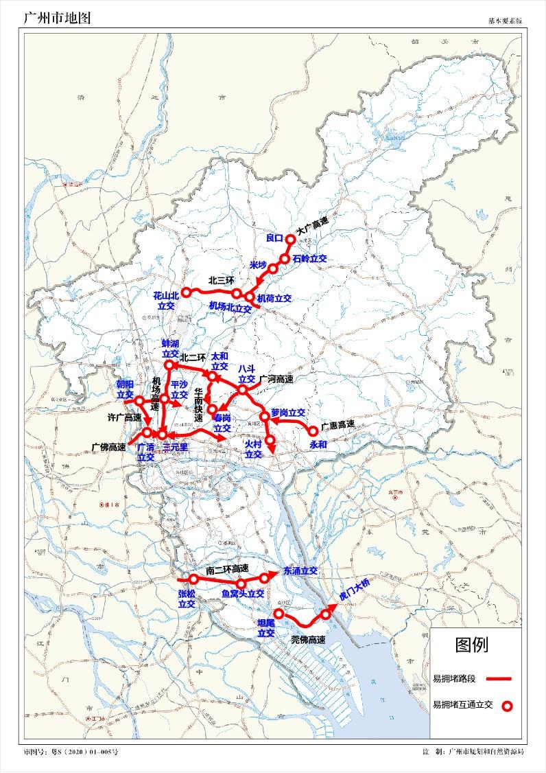 易缓慢路段包括北环高速(沙贝立交—广花立交段)、机场高速(三元里—蚌湖立交段)、乐广高速(花山互通立交—花山隧道段)、华南快速路(龙洞收费站—春岗立交段)、东二环高速(笔村立交—火村立交段)、东南西环(仑头—土华段)、广深高速(火村—萝岗路段)、北二环(水沥—蚌湖段)、广清高速(广清立交—朝阳立交段)、莞佛高速(坦尾立交—虎门大桥段)、南二环(东涌立交—张松立交段)等。
