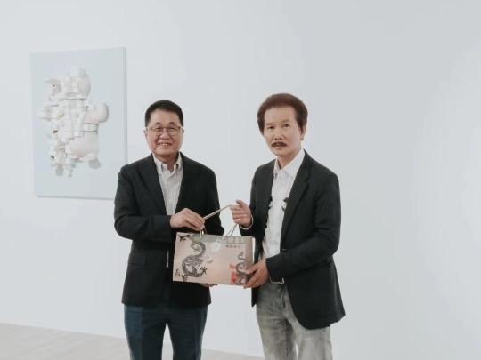 开幕式上,许鸿飞向展会赠送了《龙凤呈祥》龙年生肖雕塑。作品中,“肥女”与生肖龙以及寓意福气和好运的祥云实现联动,呈向上舒缓的姿态,表达中华民族龙年腾飞和中华民族伟大复兴的美好意愿。