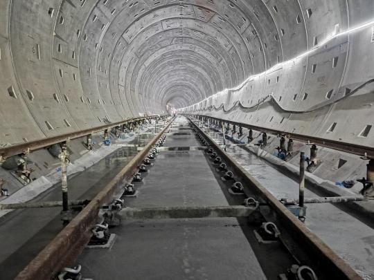 4月28日,在广州地铁十一号线赤沙站内,全线最后一节钢轨成功焊接,标志着广州首条地铁环线顺利实现长轨贯通
