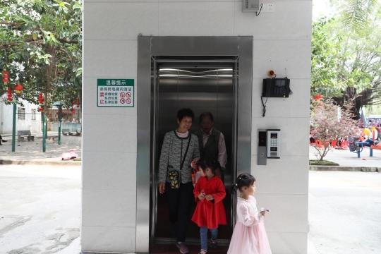 黄埔区红山街道为老旧小区安装电梯。摄于4月9日
