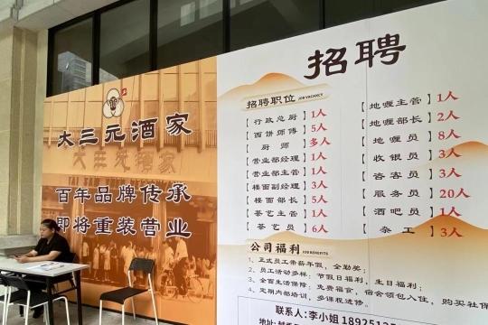 经过多年期盼,2024年5月10日,广州日报记者在长堤大马路258-266号看到,一楼门面贴着大幅告示:“大三元酒家,百年品牌传承,即将重装营业”。不过仔细再看,老广州熟悉的“大三元”商标右上角多了一个“丘”字元素,越秀区相关人士介绍,由于“大三元酒家”被注册,即将开业的酒家名为“丘大三元酒家”。
