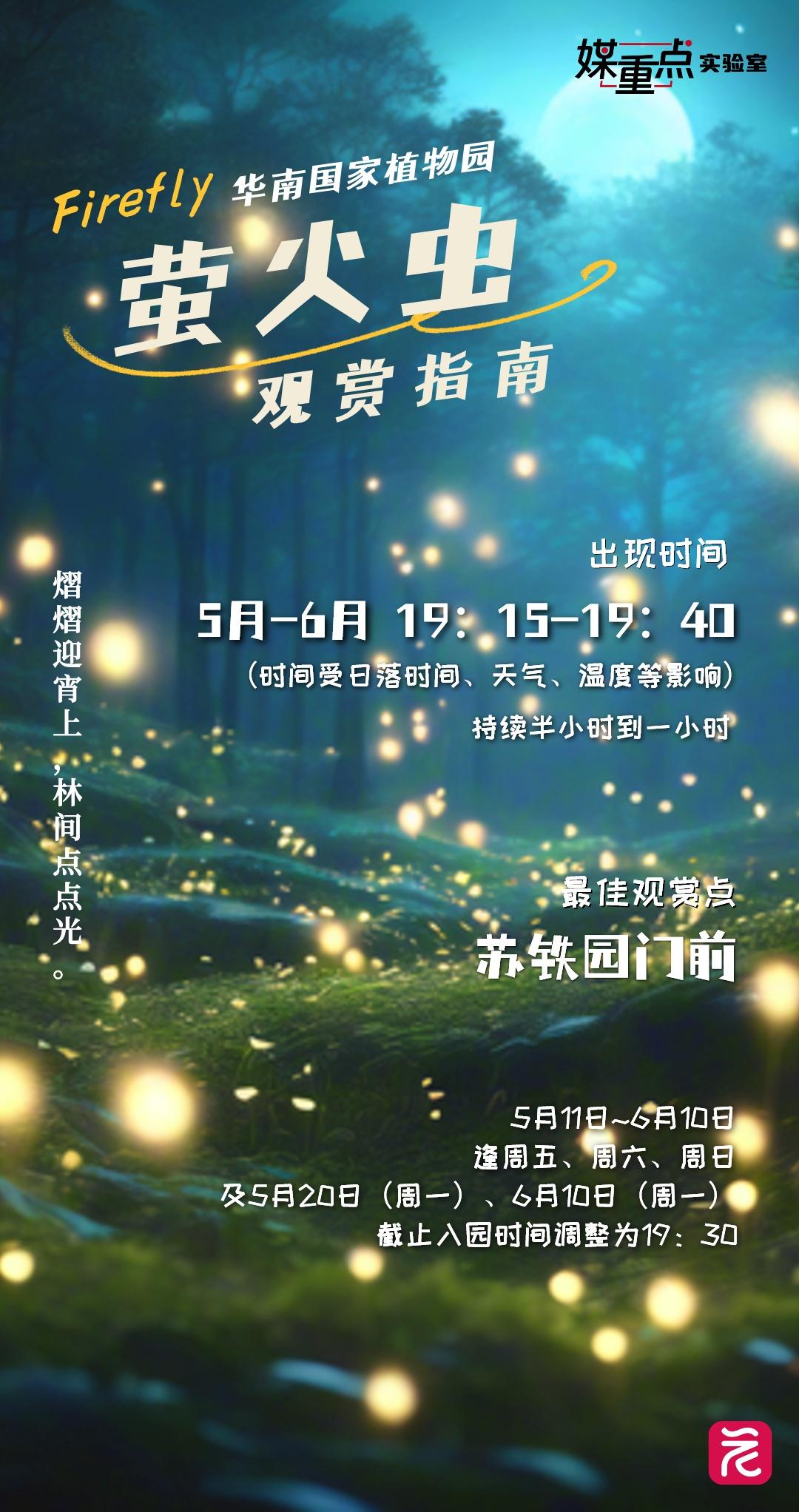 5月至6月,华南国家植物园迎来萤火虫观赏高峰期。每到夜幕降临,有一片草丛就会亮起萤火虫的点点“星光”,宛如流淌的“银河”,给人梦幻般的感受。